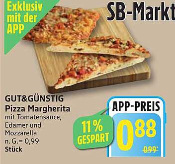 Sehen Sie sich jetzt das GUT&GÜNSTIG Pizza Margherita Angebot im Edeka Prospekt an. Dieses Angebot ist gültig von 01.09.2025 bis 06.09.2025.