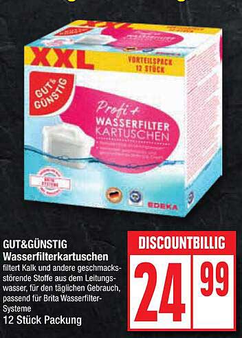 Sehen Sie sich das Gut&Günstig Wasserfilterkartuschen Angebot bei Edeka an! Dieses fantastische Angebot ist jetzt im neuesten Edeka Prospekt verfügbar. Nutzen Sie diese Chance und sparen Sie viel bei Ihrem Einkauf.