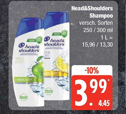 Entdecken Sie das großartige Head&Shoulders Shampoo Angebot im neuesten Edeka Prospekt. Neben diesem Angebot finden Sie noch viele weitere attraktive Rabatte. Sie können das Head&Shoulders Shampoo einfach online über die Edeka Website bestellen oder in einem Geschäft in Ihrer Nähe kaufen.