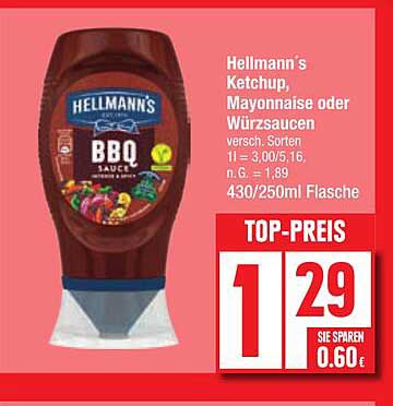 Sehen Sie sich das Hellmann's Bbq Sauce Angebot bei Edeka an! Dieses fantastische Angebot ist jetzt im neuesten Edeka Prospekt verfügbar. Nutzen Sie diese Chance und sparen Sie viel bei Ihrem Einkauf.