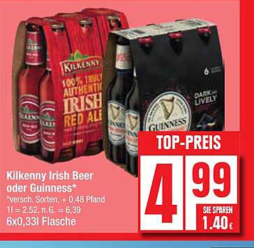 Sehen Sie sich das Kilkenny Irish Beer Oder Guinness Angebot bei Edeka an! Dieses fantastische Angebot ist jetzt im neuesten Edeka Prospekt verfügbar. Nutzen Sie diese Chance und sparen Sie viel bei Ihrem Einkauf.