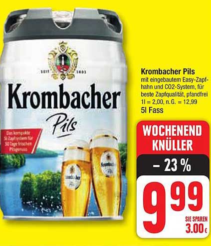 Sehen Sie sich das Krombacher Pils Angebot bei Edeka an! Dieses fantastische Angebot ist jetzt im neuesten Edeka Prospekt verfügbar. Nutzen Sie diese Chance und sparen Sie viel bei Ihrem Einkauf.