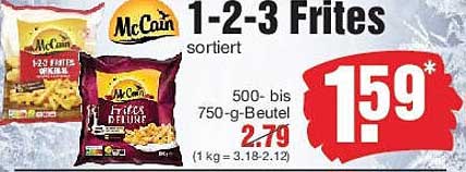 Sehen Sie sich jetzt das McCain 1-2-3 Frites sortiert Angebot im Edeka Prospekt an. Dieses Angebot ist gültig von 02.07.2025 bis 05.07.2025.