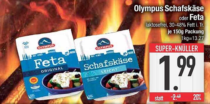 Jetzt wird’s richtig spannend! Der Olympus Schafskäse und Feta sind aktuell für nur 1,99 Euro erhältlich, statt dem regulären Preis von 2,49 Euro. Das bedeutet eine Ersparnis von 20%! Greifen Sie schnell zu, denn dieses Angebot gilt nur für kurze Zeit und macht sich schnell in jedem Kühlschrank gut.