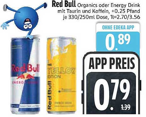 Sehen Sie sich jetzt das Red Bull Organics oder Energy Drink - 330ml Dose Angebot im Edeka Prospekt an. Dieses Angebot ist gültig von 05.10.2025 bis 11.10.2025.