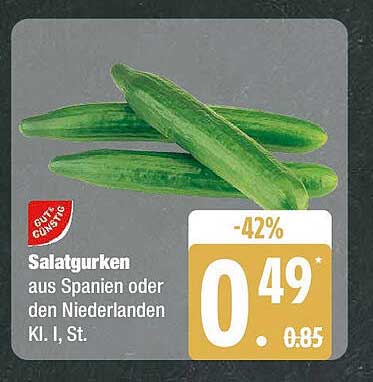 Sehen Sie sich das Salatgurken Angebot bei Edeka an! Dieses fantastische Angebot ist jetzt im neuesten Edeka Prospekt verfügbar. Nutzen Sie diese Chance und sparen Sie viel bei Ihrem Einkauf.