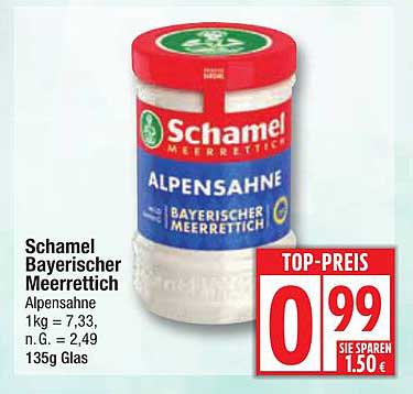 Sehen Sie sich jetzt das Schamel Bayerischer Meerrettich Alpensahne 135g Angebot im Edeka Prospekt an. Dieses Angebot ist gültig von 13.04.2025 bis 19.04.2025.