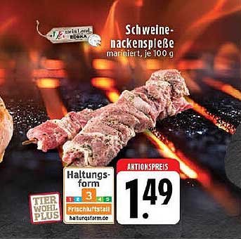 Sehen Sie sich jetzt das Schweinenacken-Spieße mariniert, je 100 g Angebot im Edeka Prospekt an. Dieses Angebot ist gültig von 21.07.2025 bis 26.07.2025.