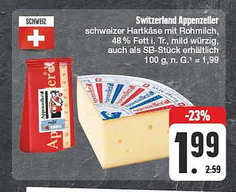 Sehen Sie sich jetzt das Switzerland Appenzeller - Schweizer Hartkäse mit Rohmilch Angebot im Edeka Prospekt an. Dieses Angebot ist gültig von 28.04.2025 bis 03.05.2025.