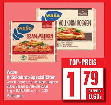 Sehen Sie sich jetzt das Wasa Knäckebrot-Spezialitäten Angebot im Edeka Prospekt an. Dieses Angebot ist gültig von 16.03.2025 bis 22.03.2025.