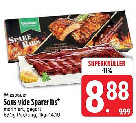 Sehen Sie sich jetzt das Wiesbauer Sous vide Spareribs, mariniert, gegart 630g Angebot im Edeka Prospekt an. Dieses Angebot ist gültig von 06.04.2025 bis 12.04.2025.