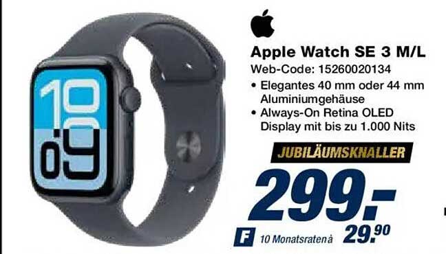 Der reguläre Preis der Apple Watch SE liegt bei 299,00 Euro, doch auf dieser Seite kannst du von einem unglaublichen Angebot profitieren: Der Preis wurde auf nur 29,90 Euro in monatlichen Raten gesenkt! Das bedeutet eine erhebliche Ersparnis, die dir die Möglichkeit gibt, qualitativ hochwertige Technik zu einem Bruchteil des Preises zu erwerben.
