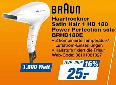 Der Braun Haartrockner Satin Hair 1 HD 180 Power Perfection ist der perfekte Begleiter für Ihr tägliches Haarstyling. Mit einer beeindruckenden Leistung von 1.800 Watt sorgt er für schnelle Trocknung und exzellente Styling-Ergebnisse. Bei diesem Angebot profitieren Sie nicht nur von einer Reduzierung des Preises, sondern auch von einem hochwertigen Produkt, das Ihr Haar schonend behandelt und gleichzeitig für voluminöse Frisuren sorgt.