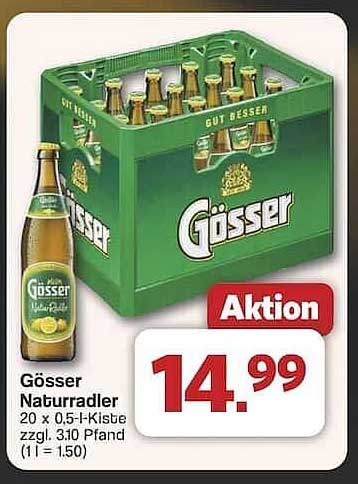 Sehen Sie sich jetzt das Gösser Naturradler - 20 x 0,5 l-Kiste für nur 14,99 € Angebot im Famila Nord Ost Prospekt an. Dieses Angebot ist gültig von 30.06.2025 bis 05.07.2025.