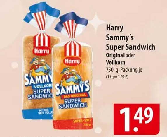 Sehen Sie sich das Harry Sammy's Super Sandwich Angebot bei Famila Nord Ost an! Dieses fantastische Angebot ist jetzt im neuesten Famila Nord Ost Prospekt verfügbar. Nutzen Sie diese Chance und sparen Sie viel bei Ihrem Einkauf.