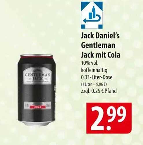 Möchten Sie sofort informiert werden, sobald das Jack Daniel’s Gentleman Jack Mit Cola im Angebot ist? Melden Sie sich für unsere Angebots-Benachrichtigungen an. So erhalten Sie eine Benachrichtigung, sobald das Produkt zu einem günstigen Preis verfügbar ist.