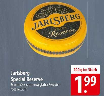 Sehen Sie sich jetzt das Jarlsberg Special Reserve Schnittkäse nach norwegischer Rezeptur Angebot im Famila Nord Ost Prospekt an. Dieses Angebot ist gültig von 29.09.2025 bis 04.10.2025.