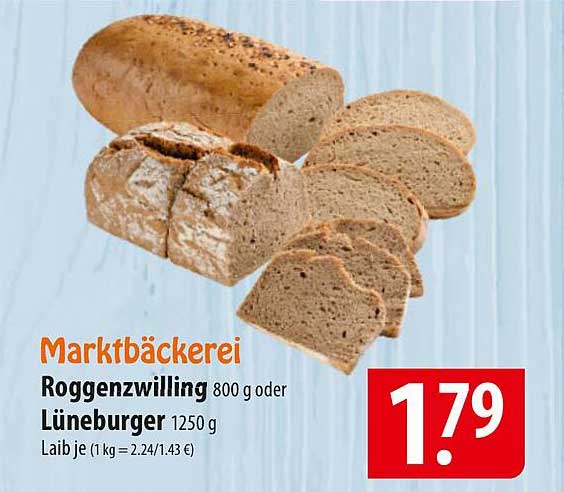 Sehen Sie sich jetzt das Marktbäckerei Roggenzwilling 800 g oder Lüneburger 1250 g Angebot im Famila Nord Ost Prospekt an. Dieses Angebot ist gültig von 22.09.2025 bis 27.09.2025.