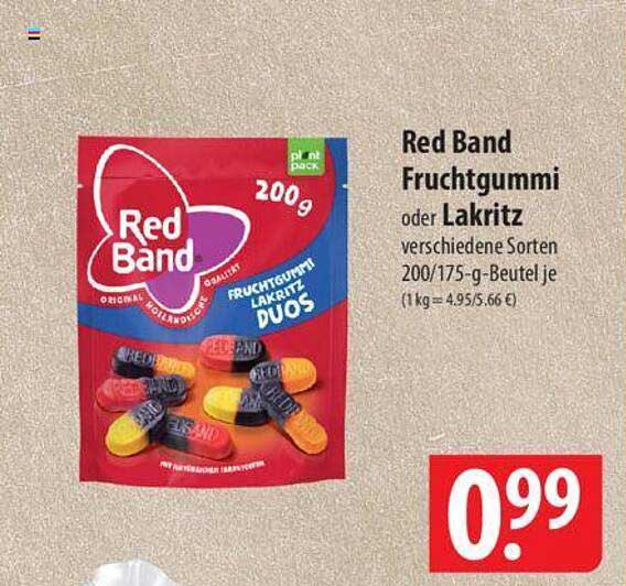 Möchten Sie sofort informiert werden, sobald das Red Band Fruchtgummi Oder Lakritz im Angebot ist? Melden Sie sich für unsere Angebots-Benachrichtigungen an. So erhalten Sie eine Benachrichtigung, sobald das Produkt zu einem günstigen Preis verfügbar ist.