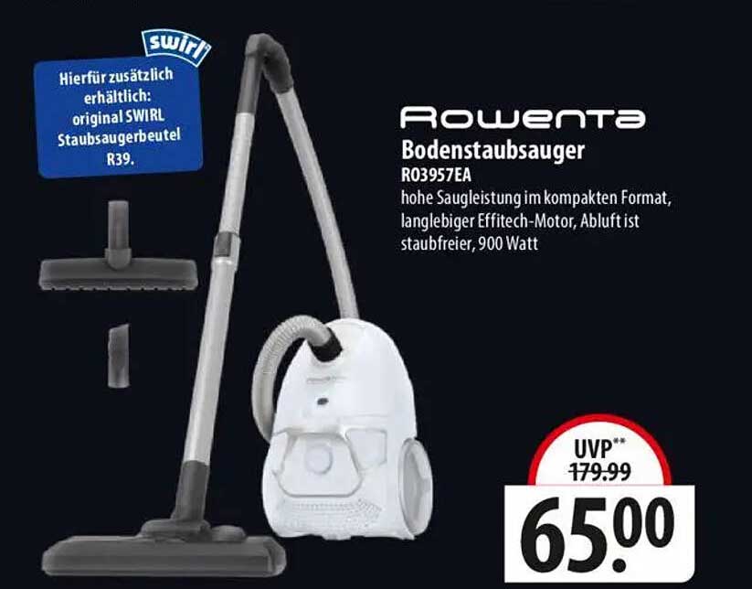 Sehen Sie sich das Rowenta Bodenstaubsauger R03957Ea Angebot bei Famila Nord Ost an! Dieses fantastische Angebot ist jetzt im neuesten Famila Nord Ost Prospekt verfügbar. Nutzen Sie diese Chance und sparen Sie viel bei Ihrem Einkauf.