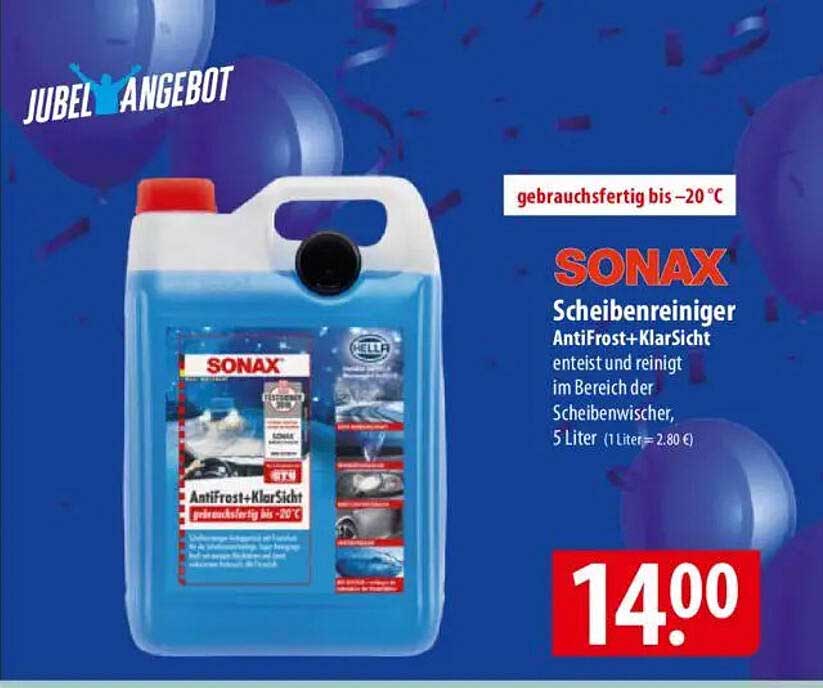 Sehen Sie sich das Sonax Scheibenreiniger Antifrost+Klarsicht Angebot bei Famila Nord Ost an! Dieses fantastische Angebot ist jetzt im neuesten Famila Nord Ost Prospekt verfügbar. Nutzen Sie diese Chance und sparen Sie viel bei Ihrem Einkauf.