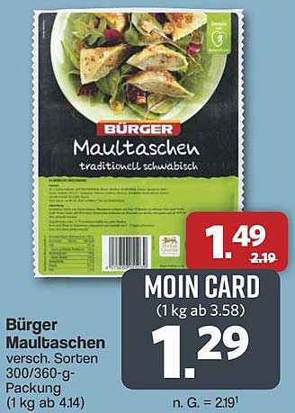 Sehen Sie sich das Bürger Maultaschen Angebot bei Famila Nord West an! Dieses fantastische Angebot ist jetzt im neuesten Famila Nord West Prospekt verfügbar. Nutzen Sie diese Chance und sparen Sie viel bei Ihrem Einkauf.