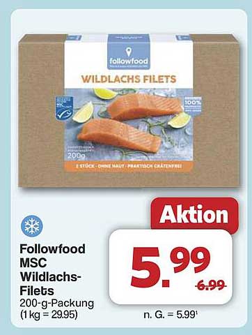 Sehen Sie sich jetzt das Followfood MSC Wildlachs-Filets 200-g-Packung Angebot im Famila Nord West Prospekt an. Dieses Angebot ist gültig von 06.10.2025 bis 11.10.2025.