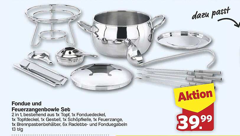 Möchten Sie sofort informiert werden, sobald das Fondue Und Feuerzangenbowle Set im Angebot ist? Melden Sie sich für unsere Angebots-Benachrichtigungen an. So erhalten Sie eine Benachrichtigung, sobald das Produkt zu einem günstigen Preis verfügbar ist.