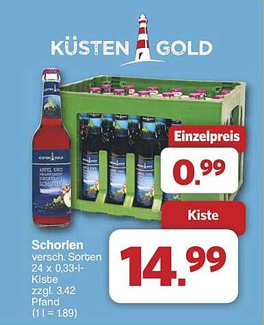 Entdecken Sie die erfrischenden KÜSTEN GOLD Schorlen, die in verschiedenen köstlichen Sorten erhältlich sind. Diese Schorlen sind nicht nur geschmackvoll, sondern auch perfekt für gesellige Anlässe. Mit einer gesamten Kiste von 24 Flaschen à 0,33 l können Sie sicherstellen, dass Sie und Ihre Freunde immer gut versorgt sind. Ein ausgezeichnetes Angebot, das Erfrischung und Genuss in einer praktischen Verpackung vereint!