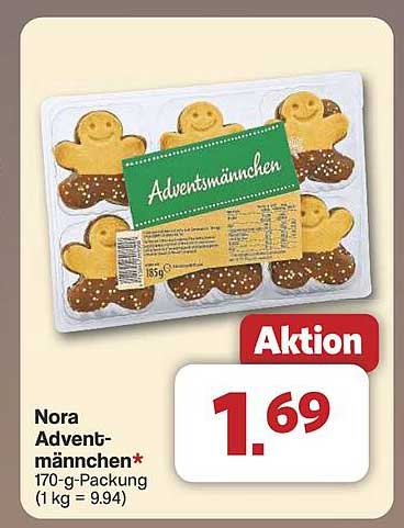 Sehen Sie sich jetzt das Nora Adventsmännchen 170-g-Packung Angebot im Famila Nord West Prospekt an. Dieses Angebot ist gültig von 06.10.2025 bis 11.10.2025.