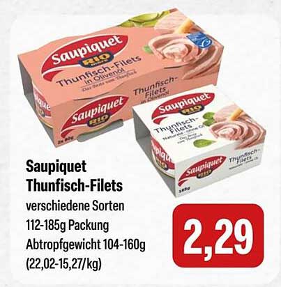 Entdecken Sie die köstlichen Saupiquet Thunfish-Filets, die jetzt in verschiedenen Sorten für nur 2,29 € erhältlich sind. Diese zarten Filets sind die perfekte Ergänzung für Ihr nächstes Gericht oder Ihre Snack-Pläne und versprechen eine hervorragende Qualität zu einem unschlagbaren Preis. Ob im Salat, auf dem Brot oder pur - Thunfisch-Filets bieten Ihnen immer einen schmackhaften Genuss!