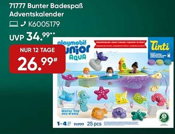 Wenn Ihnen dieses Angebot gefällt, sollten Sie auch die weiteren tollen Aktionen und Angebote auf dieser Seite nicht verpassen. Der Adventskalender ist nur für kurze Zeit erhältlich, also greifen Sie schnell zu und sichern Sie sich diesen fantastischen Badespaß für Ihr Kind!