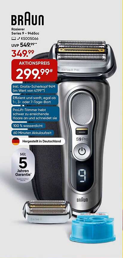 Sehen Sie sich das Braun Rasierer Series 9 - 9465Cc Angebot bei Galeria an! Dieses fantastische Angebot ist jetzt im neuesten Galeria Prospekt verfügbar. Nutzen Sie diese Chance und sparen Sie viel bei Ihrem Einkauf.