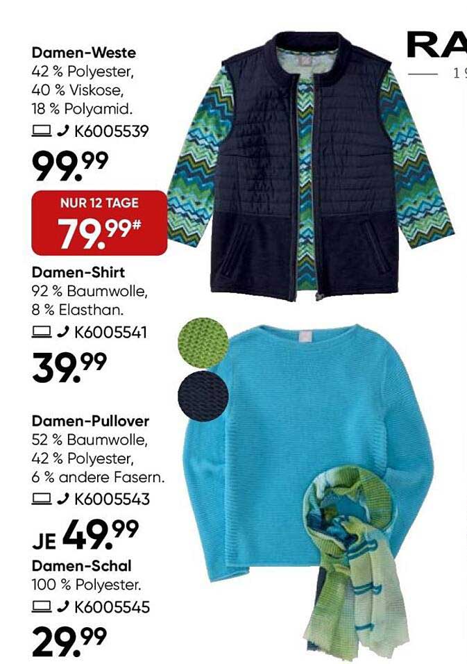 Der reguläre Preis für die Damen-Weste beträgt 99,99€, doch für kurze Zeit kannst du sie für nur 79,99€ erwerben! Das Damen-Shirt kostet 39,99€. Verglichen mit der Qualität und dem Stil, den du erhältst, ist dieses Angebot ein absolutes Schnäppchen. Ergreife die Gelegenheit und sichere dir diese tollen Teile zum reduzierten Preis!