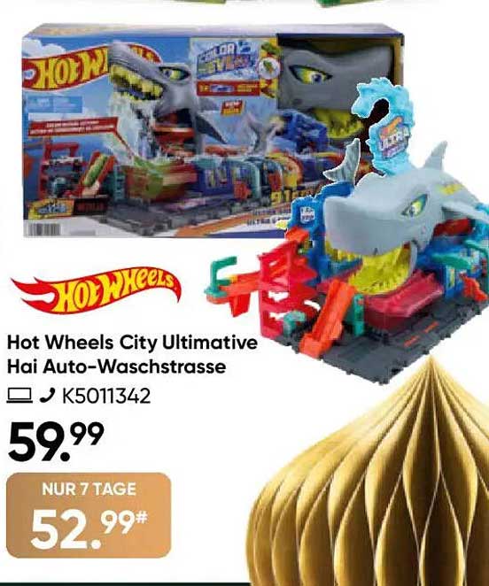 Sehen Sie sich jetzt das Hot Wheels City Ultimate Hai Auto-Waschstraße Angebot im Galeria Prospekt an. Dieses Angebot ist gültig von 09.12.2024 bis 15.12.2024.