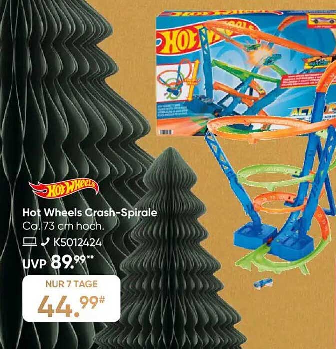Sehen Sie sich jetzt das Hot Wheels Crash-Spirale Angebot im Galeria Prospekt an. Dieses Angebot ist gültig von 16.12.2024 bis 22.12.2024.