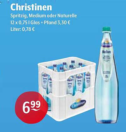 Entdecken Sie das verlockende Angebot für die beliebten Christinen Mineralwasser-Varianten – spritzig, medium oder naturel. Dieses Angebot ist perfekt für alle, die Wert auf hochwertige Erfrischung legen und gleichzeitig ihren Geldbeutel schonen möchten. Von 31. März bis 5. April 2025 haben Sie die Gelegenheit, dieses erstklassige Wasser zum Sonderpreis zu genießen!