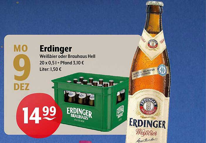 Sehen Sie sich jetzt das Erdinger Weißbier oder Brauhaus Hell Angebot im Getränke Hoffmann Prospekt an. Dieses Angebot ist gültig von 09.12.2024 bis 15.12.2024.