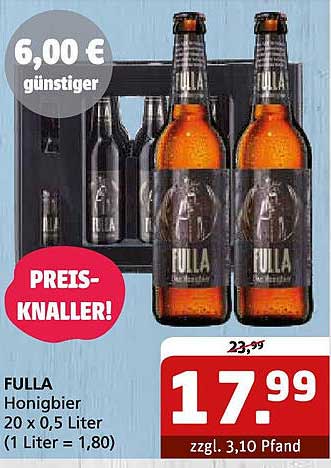 Freuen Sie sich auf ein köstliches Angebot aus dem Getränke Quelle-Prospekt! Das FULLA Honigbier, bekannt für seinen einzigartigen Geschmack und seine hohe Qualität, ist jetzt besonders günstig zu haben. Vom 22. Juni bis zum 5. Juli 2025 können Sie dieses erfrischende Bier im 20er-Pack genießen und dabei bares Geld sparen.