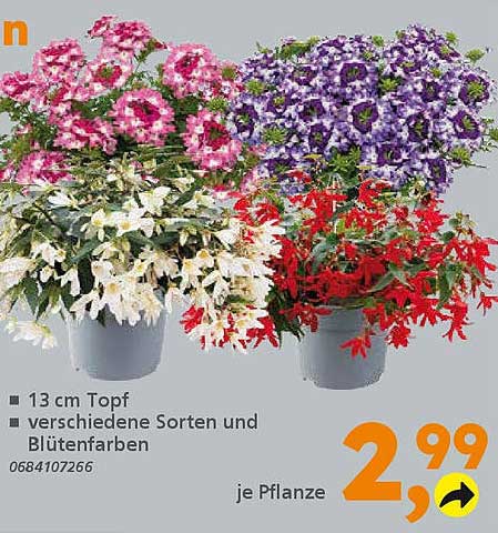 Mit einem Preis von nur 2,99 € je Pflanze ist dieses Angebot nicht nur attraktiv, sondern auch günstig. Besonders im Vergleich zu anderen Pflanzenangeboten in der Region stellt dies ein hervorragendes Preis-Leistungs-Verhältnis dar. Sichern Sie sich jetzt diese farbenfrohen Pflanzen zu einem unwiderstehlichen Preis!