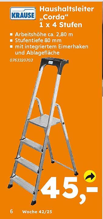 Sehen Sie sich jetzt das Haushaltsleiter „Corda“ 1 x 4 Stufen Angebot im Globus Baumarkt Prospekt an. Dieses Angebot ist gültig von 12.10.2025 bis 18.10.2025.
