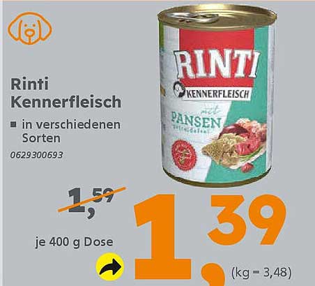 Sehen Sie sich jetzt das Rinti Kennerfleisch in verschiedenen Sorten Angebot im Globus Baumarkt Prospekt an. Dieses Angebot ist gültig von 21.09.2025 bis 27.09.2025.