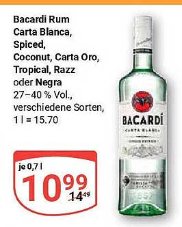 Mit einem Preis von nur 10,99 Euro (statt 14,49 Euro) ist dieser Bacardi Rum stark reduziert und bietet dir eine Ersparnis, die du nicht ignorieren kannst. Ein tolles Angebot, das dir erlaubt, hochwertigen Rum zu einem günstigeren Preis zu genießen. Warum also nicht gleich zuschlagen?