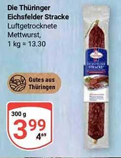 Die Thüringer Eichsfelder Stracke Luftgetrocknete Mettwurst Angebot bei Globus