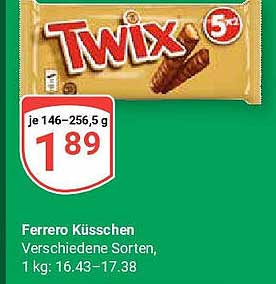 Entdecken Sie die unwiderstehlichen Ferrero Küsschen in verschiedenen Sorten, jetzt zu einem sensationellen Preis von nur 1,89 €. Diese köstlichen Snacks sind perfekt, um sich selbst zu verwöhnen oder um Ihren Freunden eine süße Freude zu bereiten. Egal, ob beim Filmeabend, beim Kaffee mit Freunden oder einfach nur für zwischendurch - Ferrero Küsschen sind immer die richtige Wahl.
