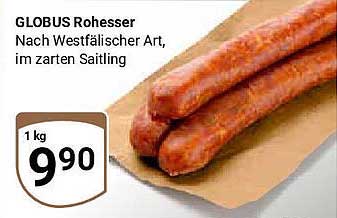 Sehen Sie sich jetzt das GLOBUS Rohesser Nach Westfälischer Art, im zarten Saitling Angebot im Globus Prospekt an. Dieses Angebot ist gültig von 13.10.2025 bis 18.10.2025.