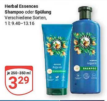 Der reguläre Preis für Herbal Essences beträgt normalerweise zwischen 9,40 € und 13,16 €. Mit diesem Angebot sparen Sie also bis zu 64%! Greifen Sie zu, solange der Vorrat reicht, und gönnen Sie Ihrem Haar die Pflege, die es verdient.