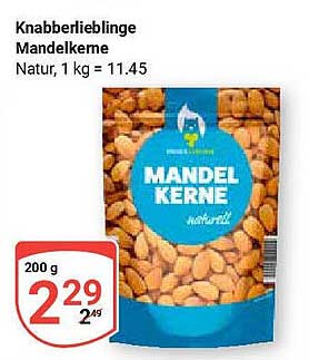 Mit einem aktuellen Preis von nur 2,29 € für 200 g bieten die Mandelkerne nicht nur Genuss, sondern auch ein hervorragendes Preis-Leistungs-Verhältnis. Der Normalpreis liegt bei 2,49 €, was bedeutet, dass Sie hier 20 Cent sparen können! Ein hervorragendes Angebot, das Sie sich nicht entgehen lassen sollten.