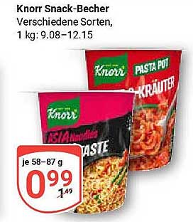 Sehen Sie sich jetzt das Knorr Snack-Becher - Verschiedene Sorten Angebot im Globus Prospekt an. Dieses Angebot ist gültig von 13.10.2025 bis 18.10.2025.