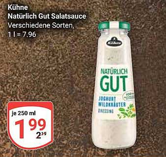 Sehen Sie sich jetzt das Kühne Natürlich Gut Salatsoße, 250 ml Angebot im Globus Prospekt an. Dieses Angebot ist gültig von 21.04.2025 bis 26.04.2025.